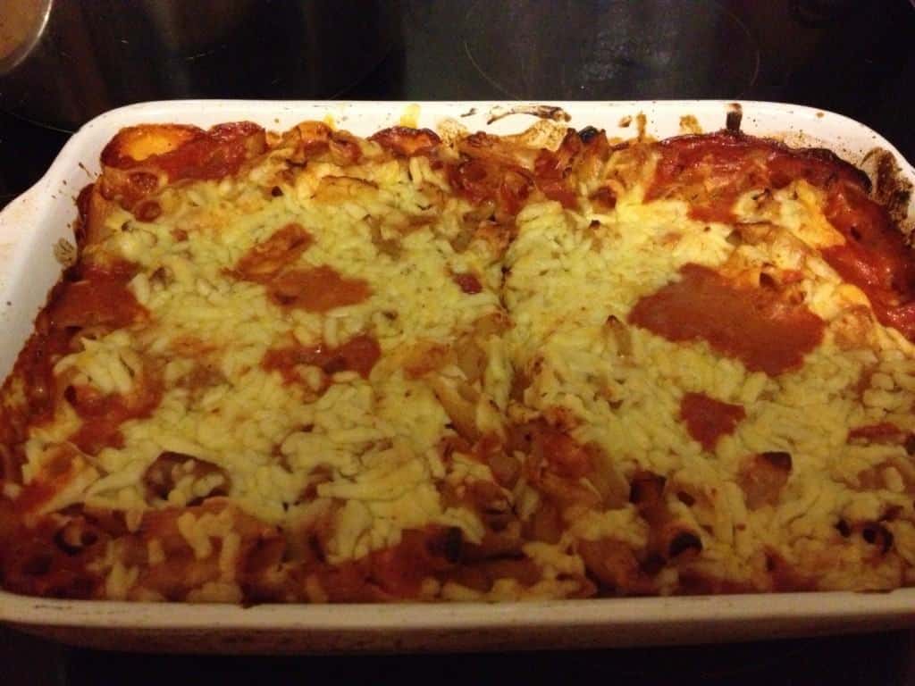 - In an oven proof dish, add the cooked pasta and pour over the creamy tomato sauce.